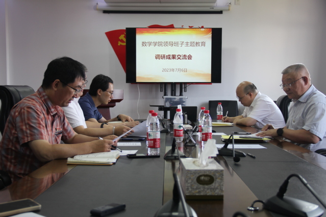 为深入学习贯彻习近平新时代中国特色社会主义思想和习近平总书记关于大兴调查研究的重要指示批示精神,交流研讨调查研究成果,7月6日下午,数学学院于红瓦楼826会议室召开领导班子主题教育调研成果交流会。数学学院党委书记杨卫东主持会议,院长徐定华、副院长杨世海、江渝、党委副书记刘福忠、专职组织员张雁参加会议。