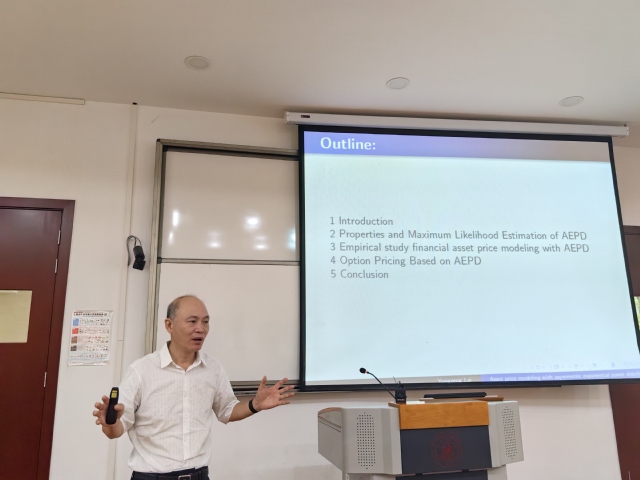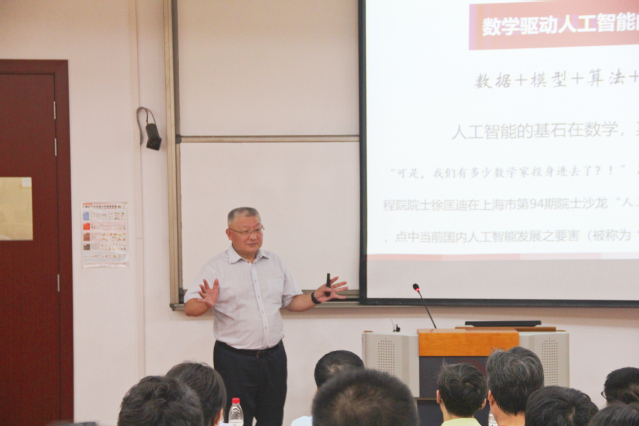 数学学院院长徐定华以“以数启智,驱动数智,培养复合型高素质数学与统计人才”为主题为大家展示了在数学驱动人工智能的新时代学习数学和统计是核心,数学与统计学是一双“慧眼”,是透视数据、透过现象看本质的“透视眼”。人工智能的基石在数学,其核心关键是算法。徐定华院长从学院背景、学位点介绍和精彩瞬间这几个方向为大家介绍了数学学院。数学学院遵循现代高等教育规律,以立德树人为根本,坚持知识、能力、素质协调发展,秉承“厚基础、重特色”的培养思路,培养具有深厚的数学基础、熟练的数据建模与计算技术、宽广的经济金融知识,能从事数学、统计学及经济金融研究与应用的复合型专业人才。他强调,在这个时代要多学数学,多用数学,活学数学,活用数学,学好数学是同学们的责任担当,也符合我们国家建设现代化强国和推进人工智能,各行各业发展的需要。