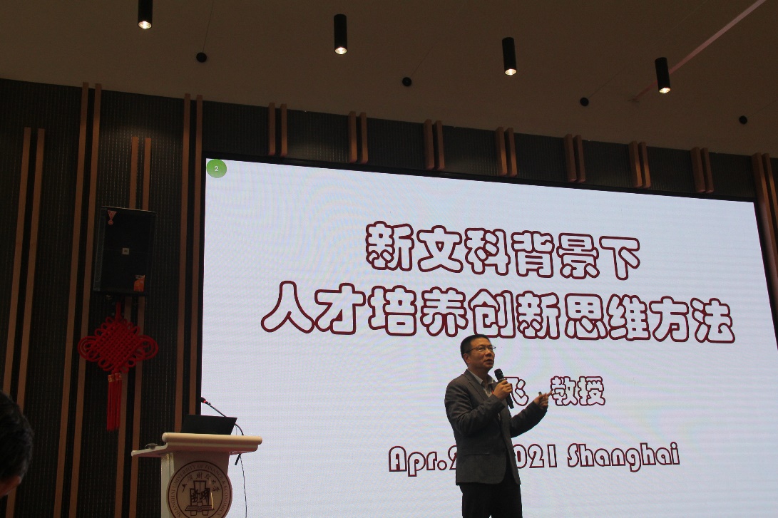 上海财经大学常务副校长徐飞带来《新文科背景下人才培养创新思维方法》主题报告,分享了新文科内涵及建设思路,以及学生创新思维培养的若干重要方法。