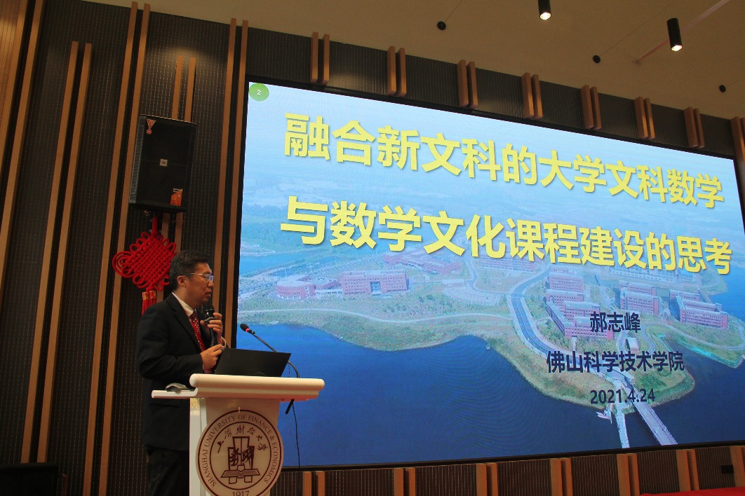 教育部高等学校大学数学课程教学指导委员会副主任郝志峰作《融合新文科的大学文科数学与数学文化课程建设的思考》主题报告,从专业优化、课程提质和模式创新三个方面进行了报告。