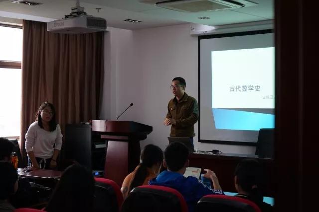 20171114日下午130数学学院博士生党支部开展了题为“数学学院博士讲堂 ——古代数学史兼论数学之美”的主题党日活动。本次活动面向数学学院本科同学,以“了解数学历史,感悟数学魅力”为主题,帮助本科生认识数学、了解数学、感受数学。