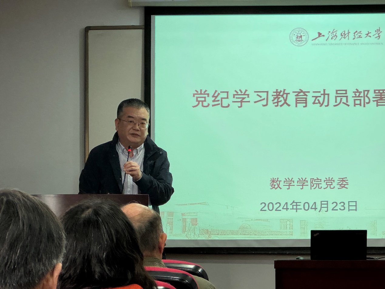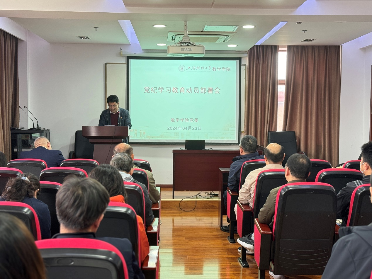 4月23日,数学学院召开全体教职工大会,启动学院党纪学习教育工作。数学学院党委书记杨卫东主持会议并作工作部署,数学学院党政领导班子及全体教职员工参加会议。