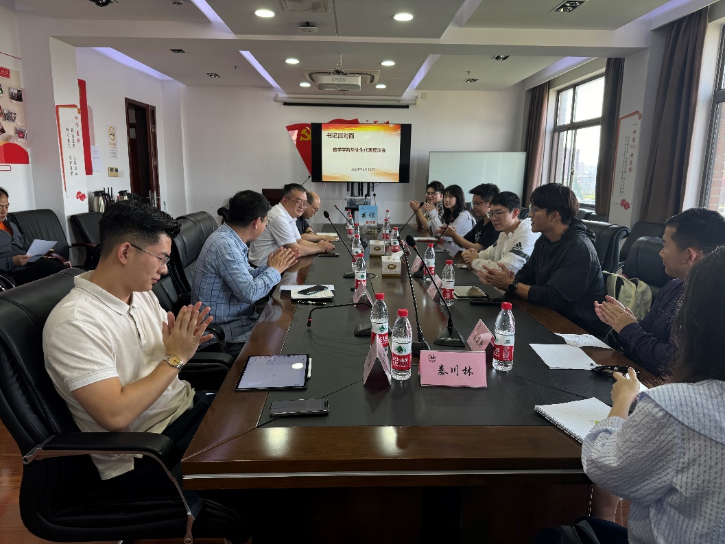 座谈会由副院长江渝主持。他指出,此次座谈会暨“书记面对面”活动的目的在于倾听毕业生代表们在校期间的感悟,收集大家对学院在发展定位、教育教学改革、课程设置、师资力量、人才培养、日常管理等方面的意见建议,以期推动学院各项工作的持续改进。院党委副书记刘福忠代表学院表达了对同学们学习生活情况的关心与重视,鼓励同学们畅所欲言,为学校和学院的发展建言献策。