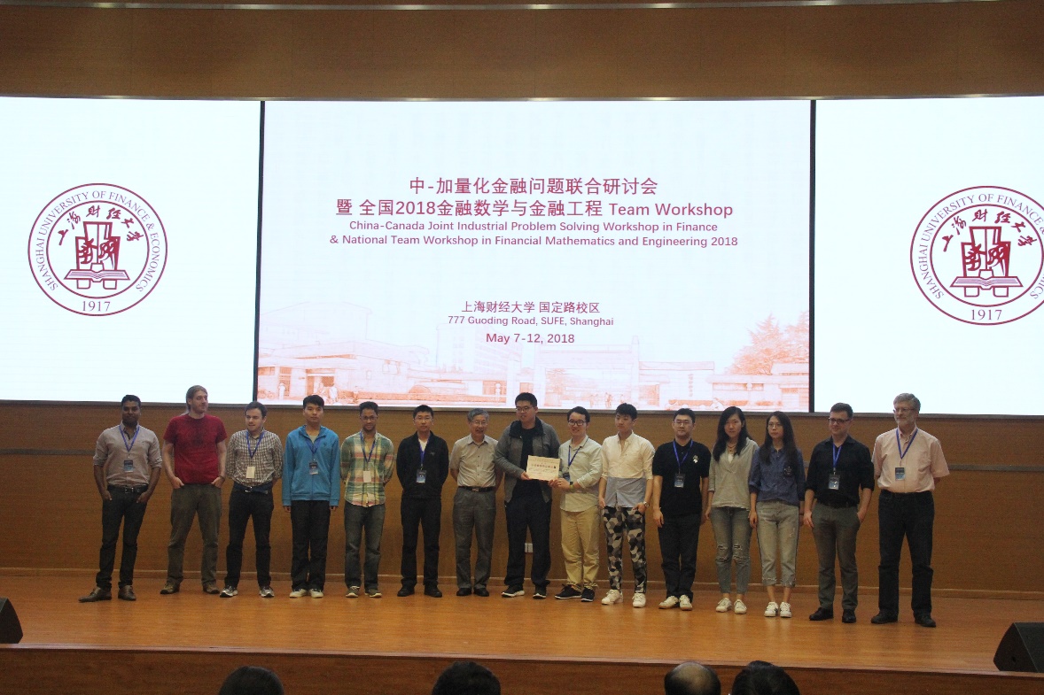 5月12日上午,由中国数学会高等教育工作委员会、加拿大 Fields 数学研究所、山东大学、上海交通大学、上海财经大学举办,北京大学、复旦大学、南开大学、苏州大学、同济大学、中国工业与应用数学学会企业合作与工业应用委员会协办的 “中-加量化金融问题联合研讨会暨全国2018 金融数学与金融工程 Team Workshop” 在上海财经大学创业中心一楼报告厅圆满闭幕。