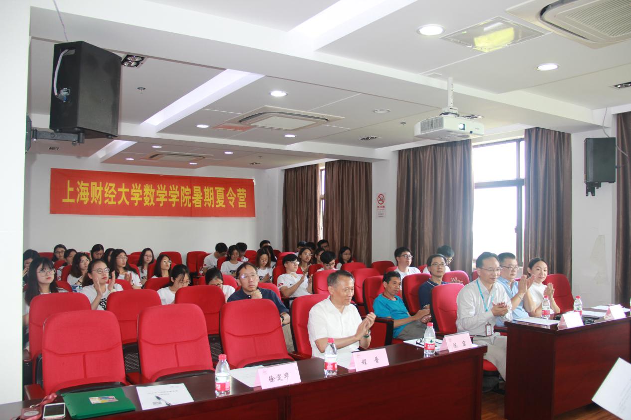 720日上午,夏令营开营仪式在红瓦楼726报告厅隆重举行。上海财经大学党委副书记陈宏,研究生院常务副院长徐龙炳,数学学院院长程晋、党总支书记杨卫东、副院长徐定华、副书记韩明辉及学院教师代表出席了开营仪式。开营仪式由徐定华副院长主持。