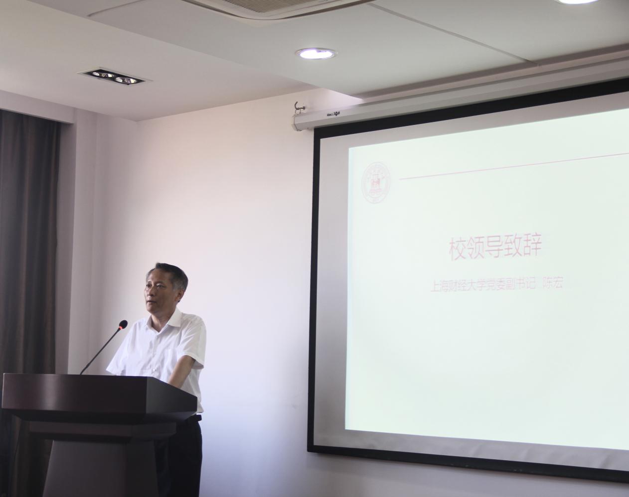 陈宏副书记首先为夏令营致辞,他首先代表上海财经大学对前来参加上财数学夏令营的学子们表示欢迎,并对上财的办学历史、优势特色和上财文化做了简要介绍。他着重强调了在大数据时代,数学学科无论是在基础研究还是应用研领域,其发展空间越来越宽广,拥有数学素养的人才比以往任何时候都更加受到欢迎。另外上财高国际化水平的人才培养特色,“厚德博学,经济匡时”的理念以及经管法文理诸学科之间的交叉融合,为培养同学们成为具有“国际视野、家国情怀以及科学精神”的文理兼通复合型数学人才提供了坚实的保障。最后,他对大家寄予殷切希望,希望同学们与时代同呼吸,与民族共命运,志存高远,努力奋斗,在建设现代化强国的伟大事业中谱写自己的人生华章!