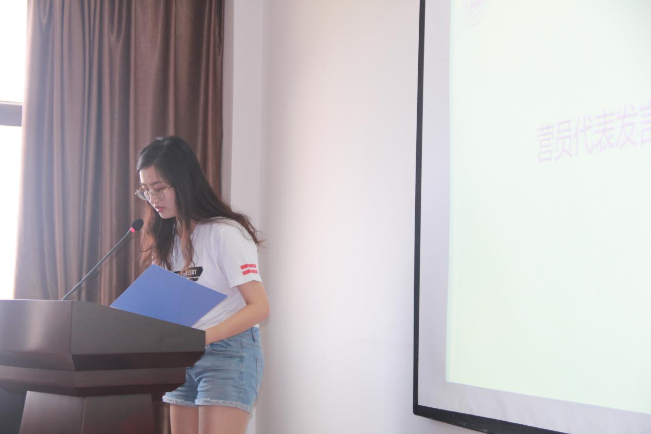 最后,来自西北工业大学的王天璐同学代表全体营员感谢数学学院的精心组织和安排,提供了宝贵的学习机会与交流的平台,能够申请成功她十分激动,认为上海财经大学这一历史悠久、声誉卓著的名校,是上海城最为璀璨的明珠之一,她坦言数学伴随每个人成长,现在这个阶段是研究数学的内在规律,以一个理性人怀着好奇与渴求去探究数学内蕴的美,相信通过此次夏令营老师们的教导以及自身的努力,每一位同学对于数学的研究能更深一层,对于数学之美的体悟也能更深一层。最后她代表所有营员表示在接下里的时间里团结友爱、互帮互助、充满自信与坚持,祝每位同学都能展现出最好的自己,都能在历经辛劳与汗水之后得偿所愿。