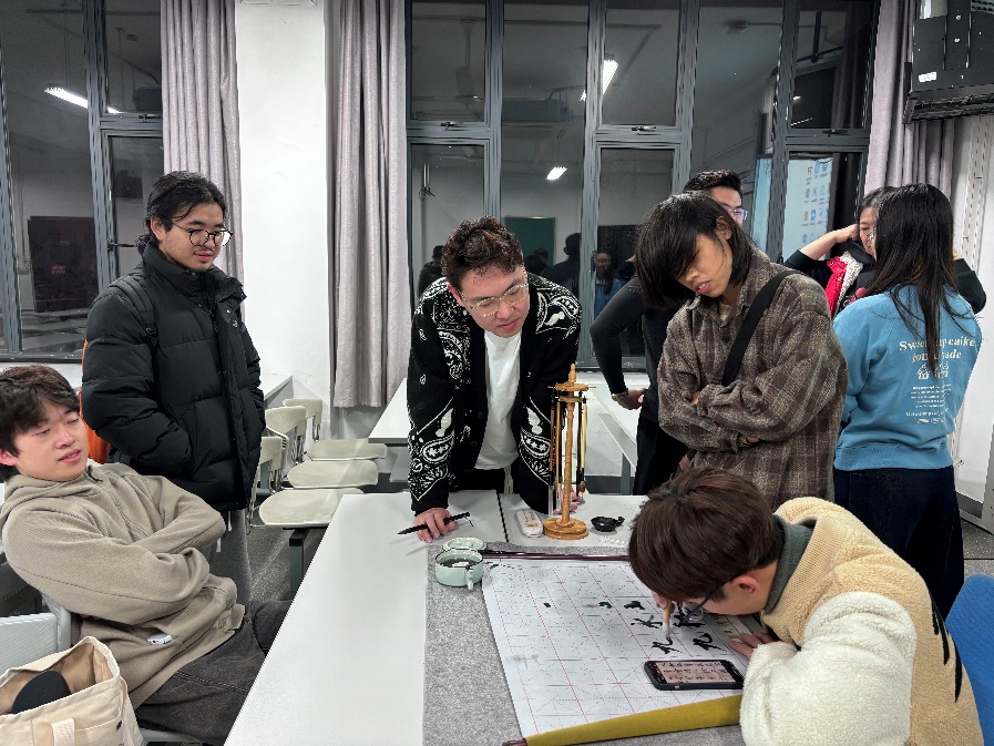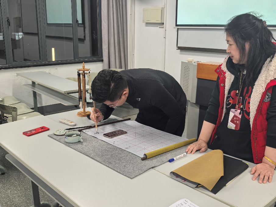 活动最后,在场的同学们亲自上手感受书法,体会书法艺术创作,感悟书法动中有静、柔中有硬的独特魅力。