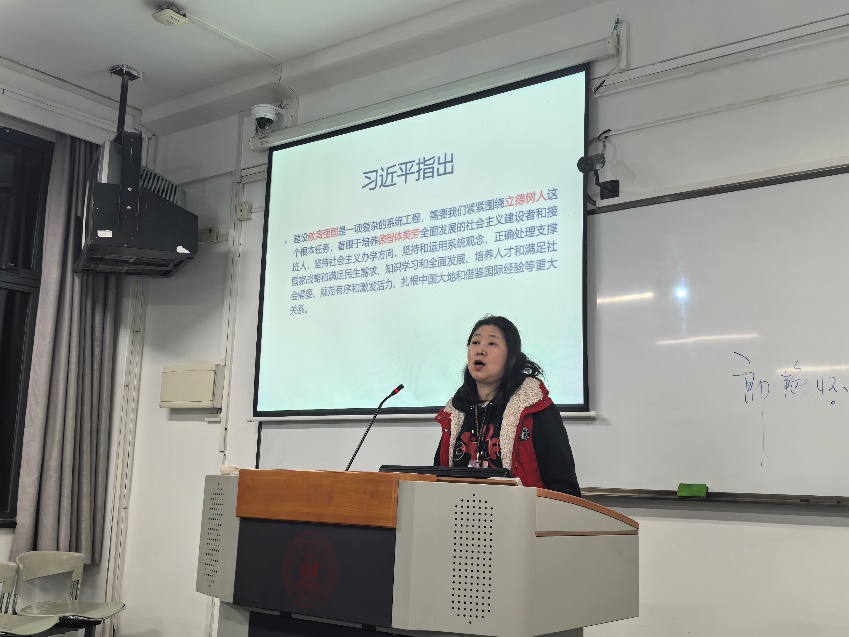 活动伊始,郎艳怀老师带领同学们学习全国教育大会精神,指出建设教育强国,需要以德树人,需要培养德智体美劳全面发展的社会主义建设者和接班人。本次书法分享正是为了提高同学们的艺术素养,以书法艺术来培养道德情操。