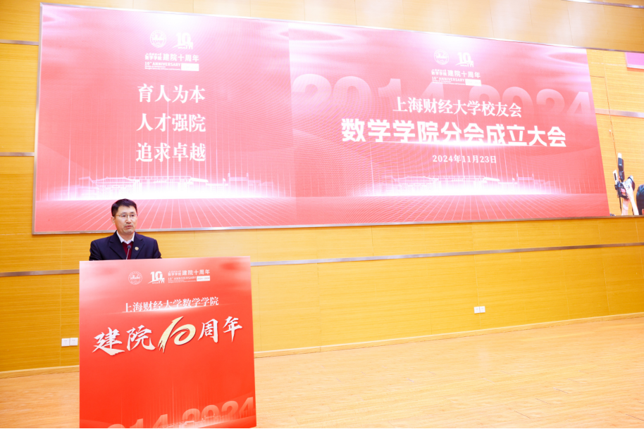 11月23日上午,上海财经大学校友会数学学院分会成立大会在上海财经大学武川路校区创业中心一楼报告厅举行。上海财经大学副校长、校友会副会长刘莉亚,校合作发展处处长、校友总会秘书长陈红梅,数学学院院长徐定华,党委书记杨卫东,副院长杨世海、江渝,党委副书记刘福忠,校友代表出席本次大会。会议由刘福忠副书记主持。大会开始,上海财经大学校友会数学学院分会筹备组代表胡丹校友汇报了《上海财经大学校友会数学学院分会筹备工作报告》。陈红梅处长宣读了《关于同意上海财经大学校友会数学学院分会成立的批复》。大会表决通过了《上海财经大学校友会数学学院分会议事规则》与理事会建议名单、理事会主要负责人建议名单。并选举产生了数学学院校友会第一届理事会成员及负责人。