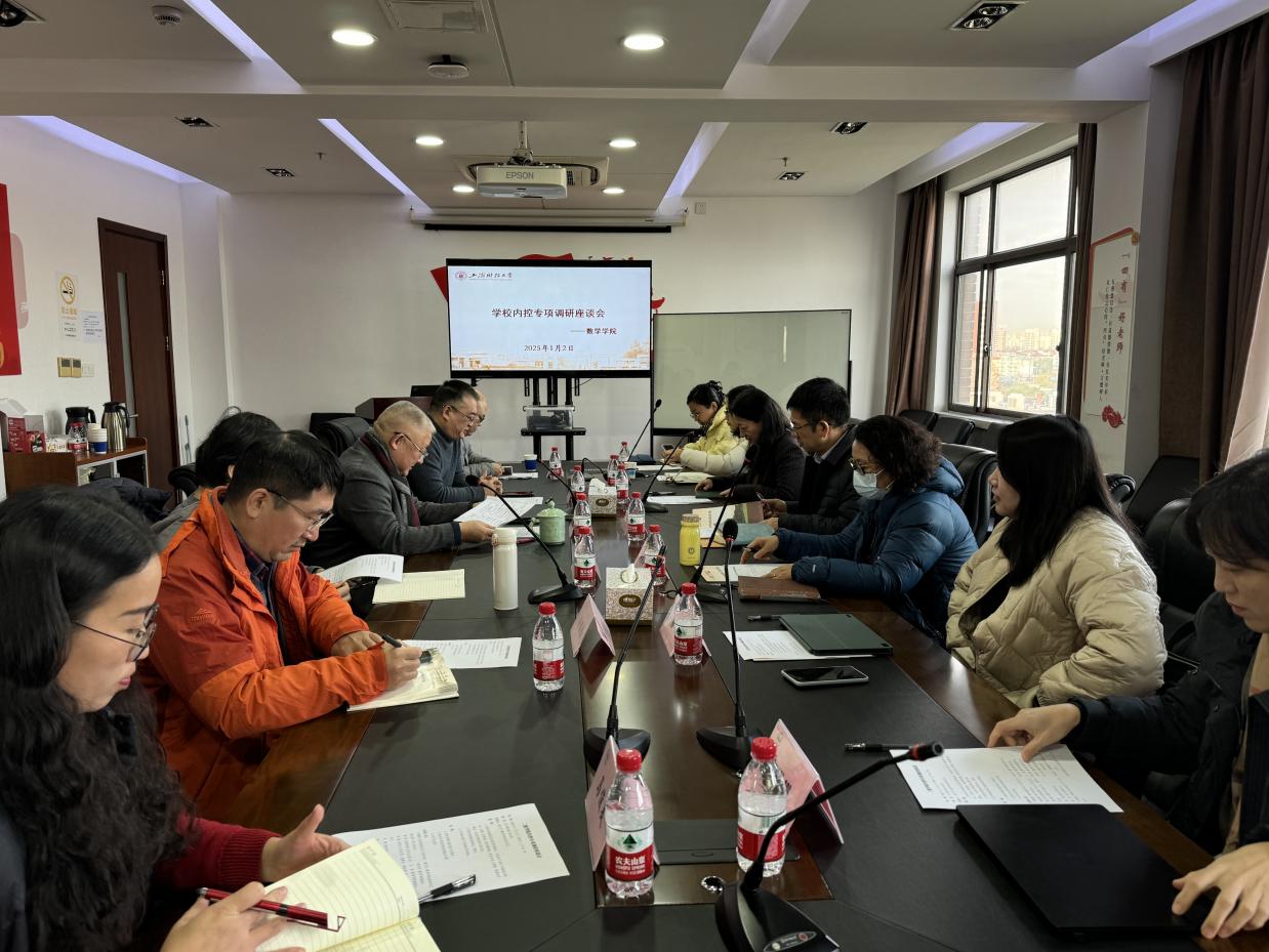为深入贯彻落实财政部、教育部《关于进一步加强高等学校内部控制建设的指导意见》,进一步提高二级学院内部管理水平,促进二级学院教育事业健康发展,2025年1月2日上午,上海财经大学党委副书记、纪委书记何鹏程带领审计处、党委巡察工作办公室、纪委办公室、监察处、财务处、网络与信息技术中心负责人一行赴数学学院开展内控专项调研。数学学院党政班子成员、系主任、院办党务与行政人员参与调研座谈会。会议由数学学院党委书记杨卫东主持。