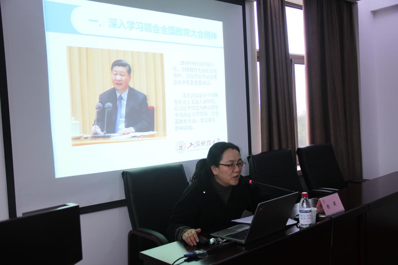 2018年12月11日下午,数学学院举办全国教育大会精神专题报告会,邀请校“全国教育大会精神理论宣讲团”成员、校纪委副书记杨晖同志作题为《牢记立德树人使命,营造风清气正氛围》的专题报告。数学学院全体教职工参加了报告会,报告会由学院总支书记杨卫东主持。