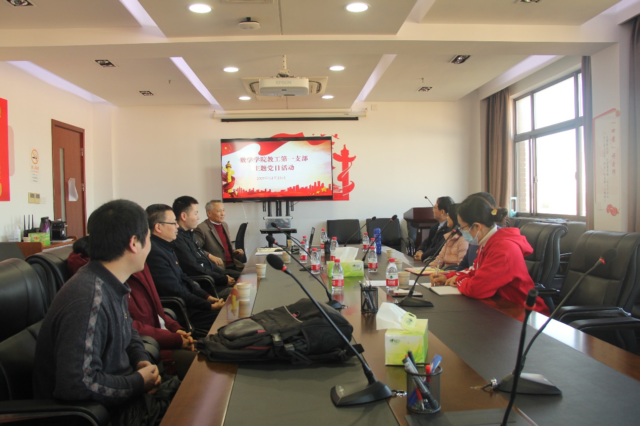 2021年12月23日星期四下午,上海财经大学党委副书记、纪委书记陈宏同志提前来到数学学院826会议室,与在座的党员同志进行交流谈心。下午两点陈宏副书记准时为数学学院教工第一支部做了精彩的报告。报告主题为:以勇于自我革命的精神全面从严治党——“十九届六中全会”精神学习体会。陈宏副书记用专业的党政知识、经典的党政案例、轻松的报告形式为数学学院教工一支部带来了一次精彩的报告。