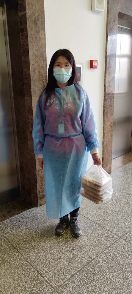 由于师生非必要不出楼的防控要求,学生和老师们的饮食问题成了一个需要亟待解决的问题。本支部江渝同志不辞辛劳参与到为同学们送餐的工作中,与学院的许伯熹老师共同承担了学生公寓9号楼、10号楼和19号楼上千份盒饭的配送分发工作。严阅同志则为驻守红瓦楼的老师们领餐送餐,为老师们的校内工作提供了更好的保障。