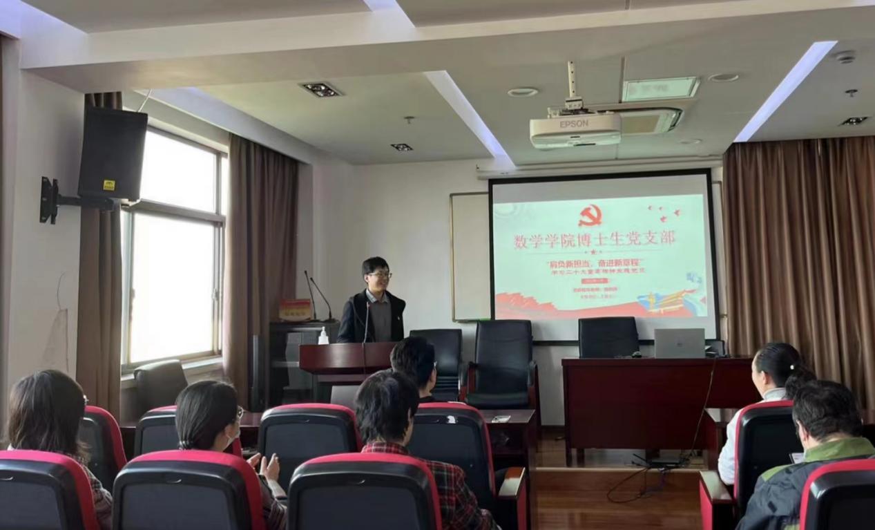 为学习党的二十大重要精神,进一步激励广大党员的责任感、使命感和荣誉感。2022年11月4日下午两点,上海财经大学数学学院博士生党支部在红瓦楼726顺利开展“肩负新担当,奋进新征程”主题党日活动,数学学院党委副书记韩明辉同志莅临指导,并对党的二十大重要精神进行深刻解读。
