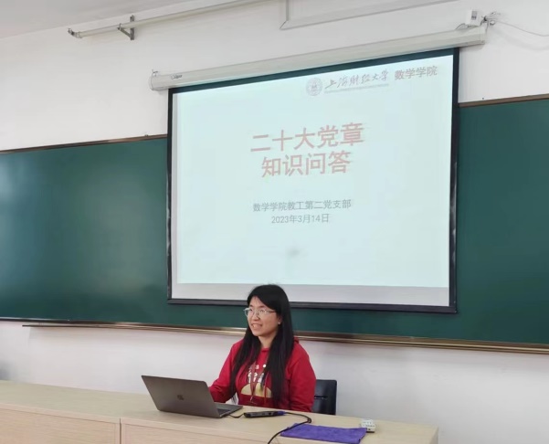 为深入学习贯彻党的二十大精神,全面开展党章党史教育,数学学院教工第二党支部于2023年3月12日下午1点举办了二十大精神学习专题组织生活会,以知识问答的形式学习二十大新党章。